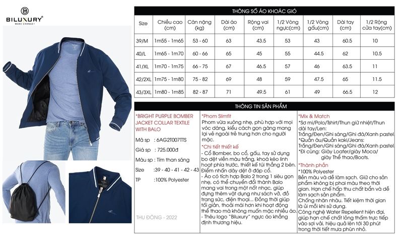 Áo khoác gió hai lớp thiết kế (Tím than sáng,39)