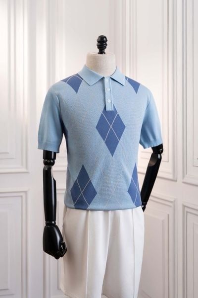 Áo Mongtogh Xanh họa tiết kẻ thoi - AP241 - 48