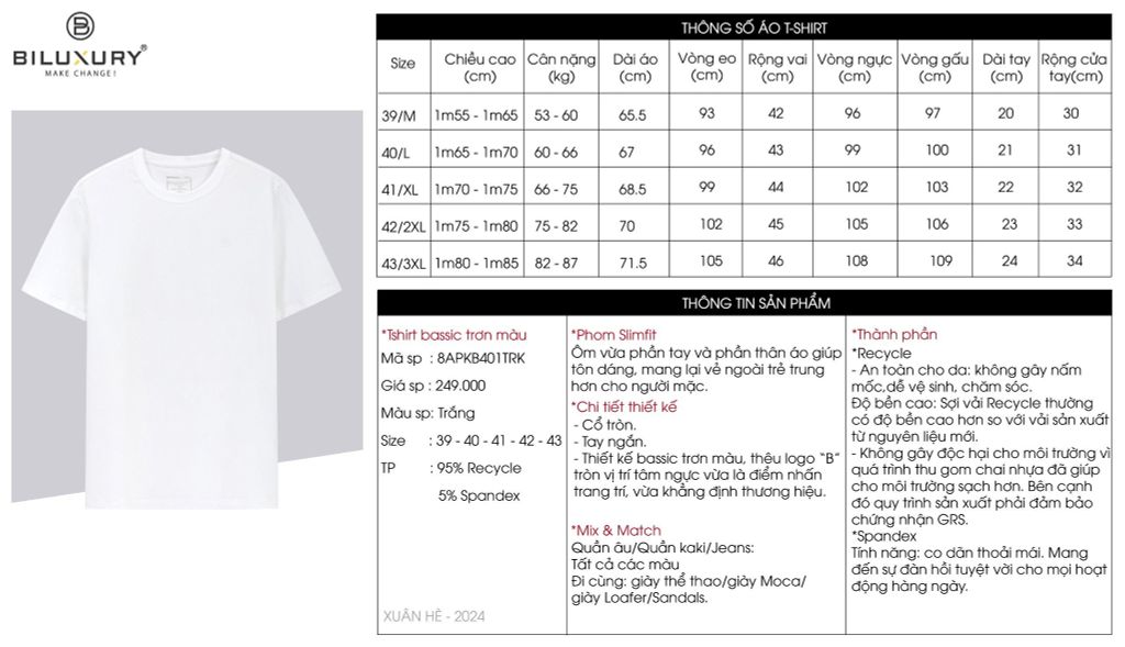 Áo phông cơ bản (Trắng kem, 39)