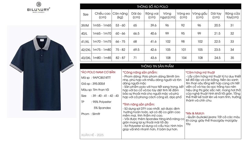Áo polo cơ bản, (Tím than tối, 43)