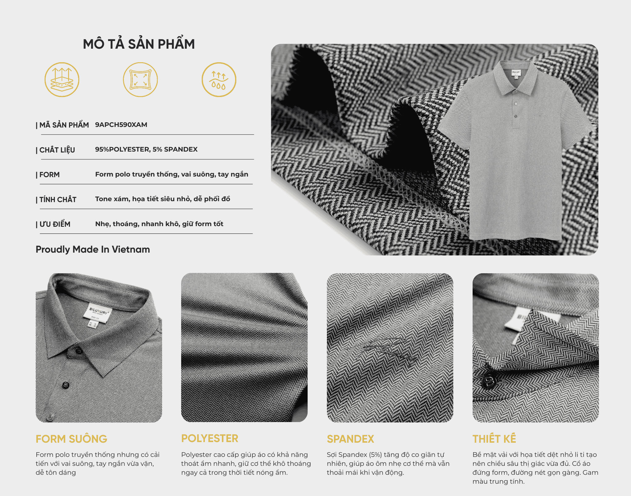 Áo polo hoạ tiết, (Xám, 39)