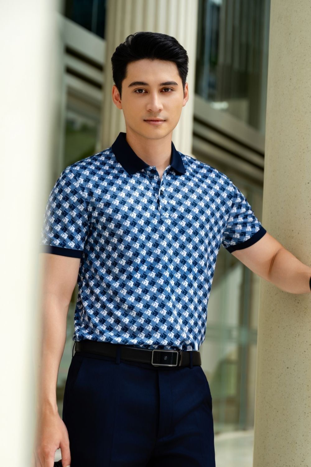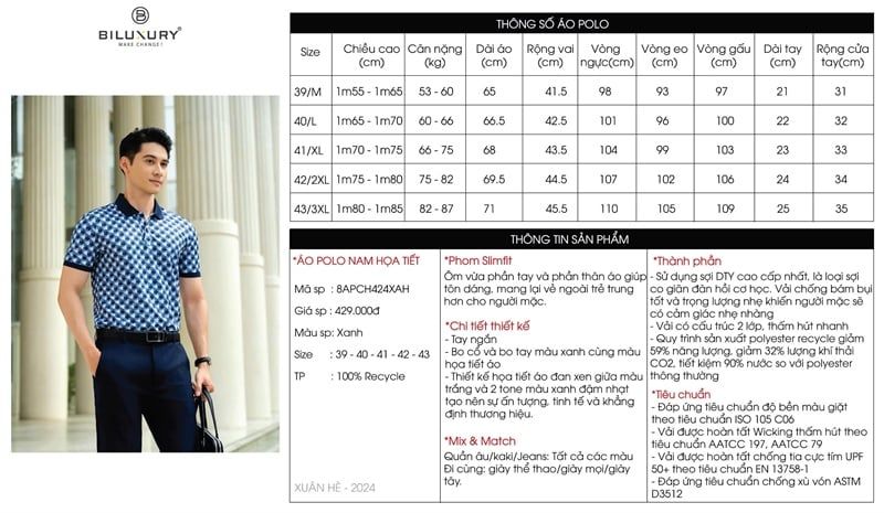 Áo polo hoạ tiết (Xanh, 39)