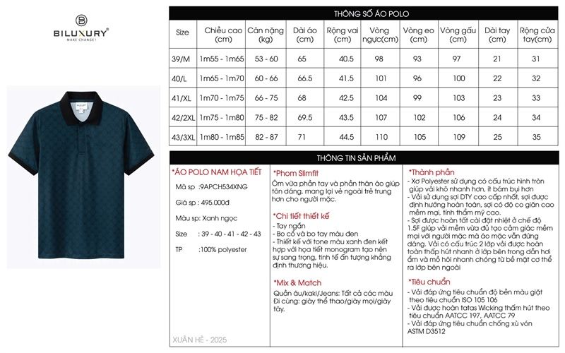 Áo polo hoạ tiết (Xanh ngọc, 39)