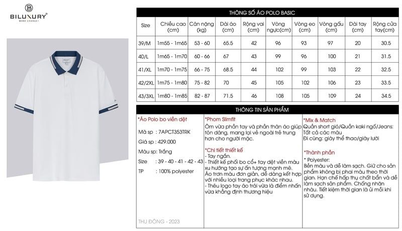 Áo polo thiết kế (Trắng kem, 39)