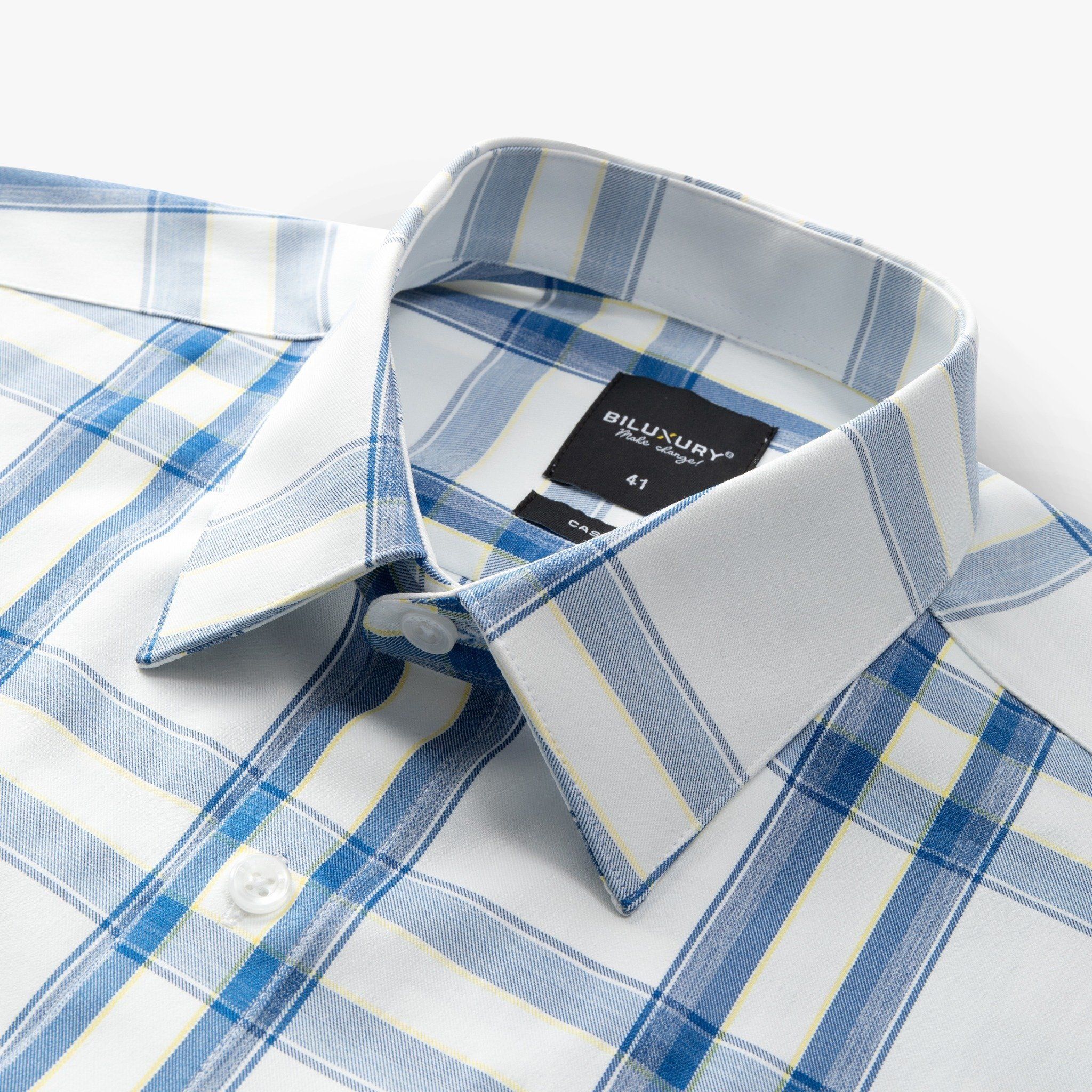 Áo sơ mi cộc tay caro, (Xanh, 39)