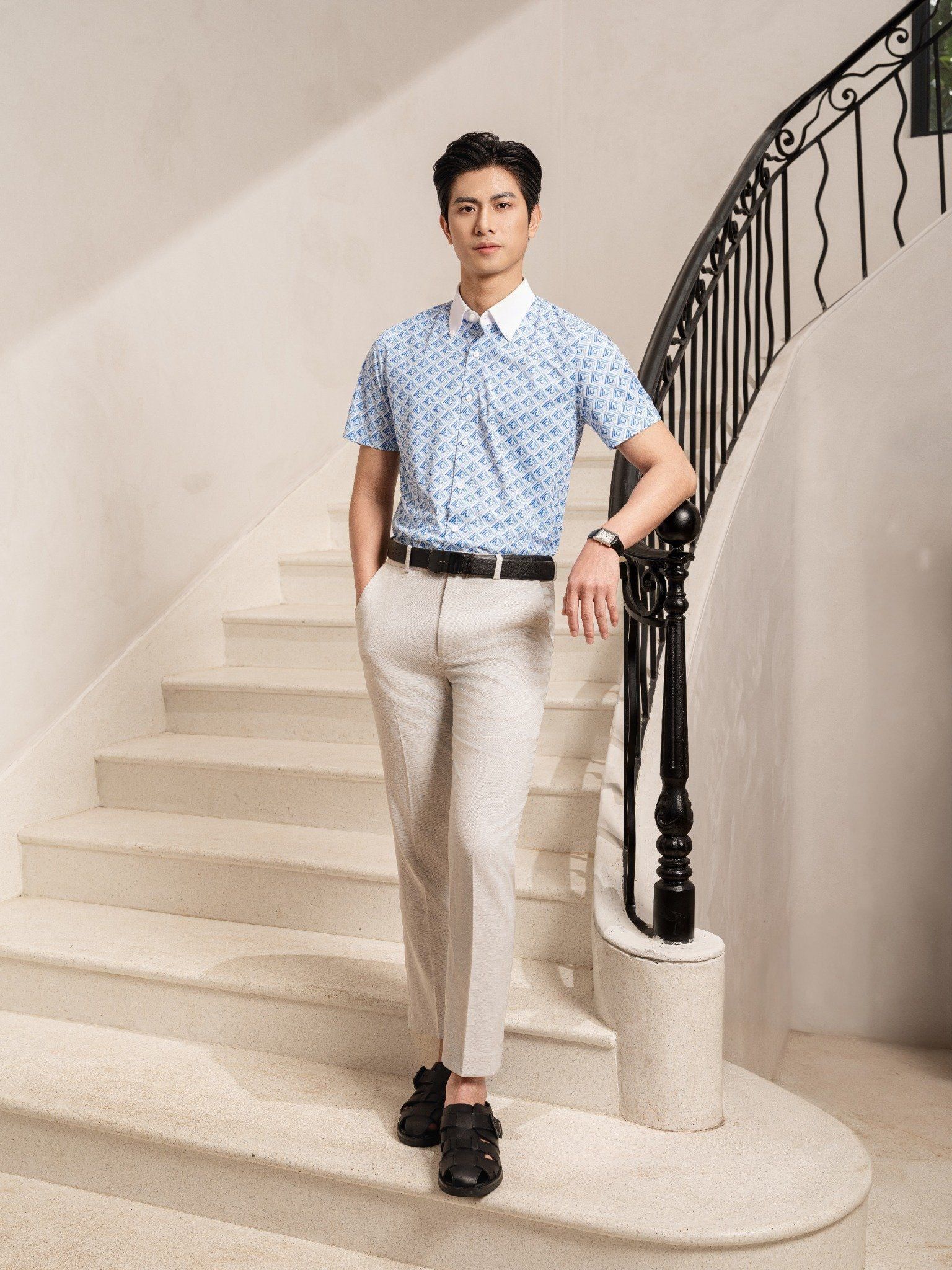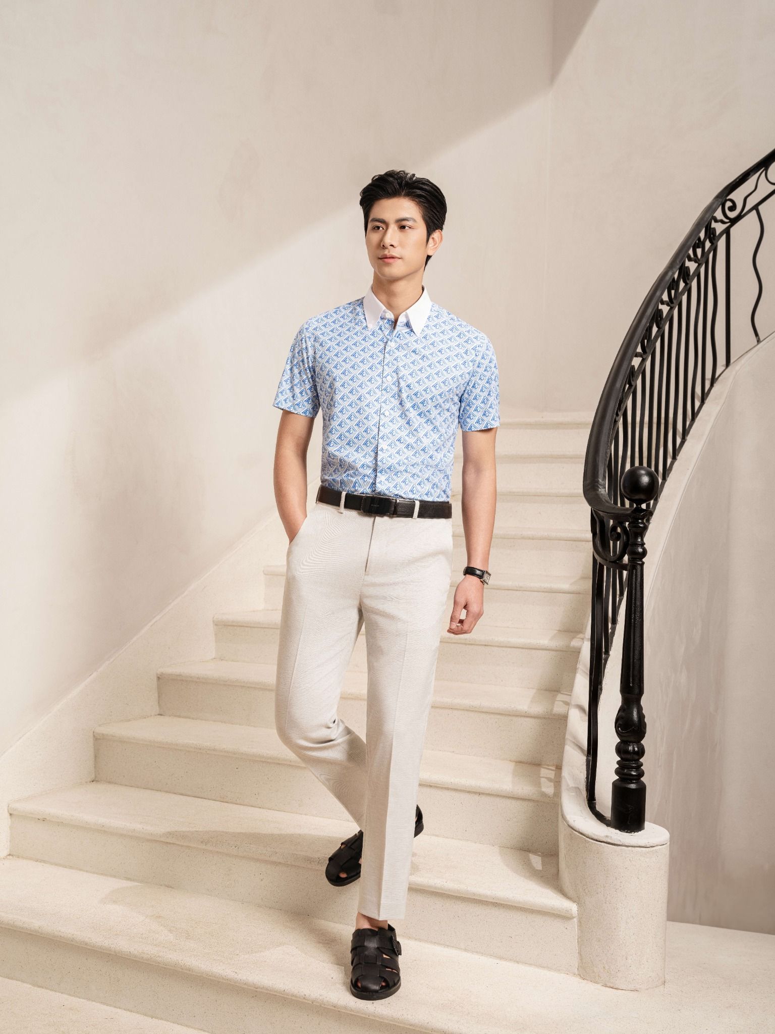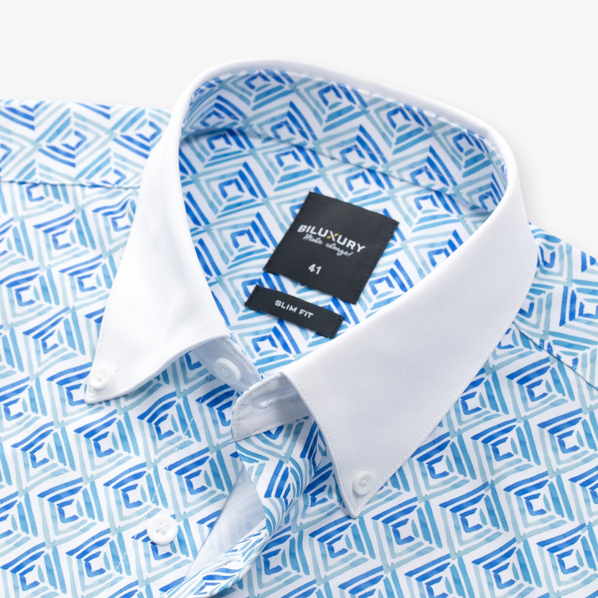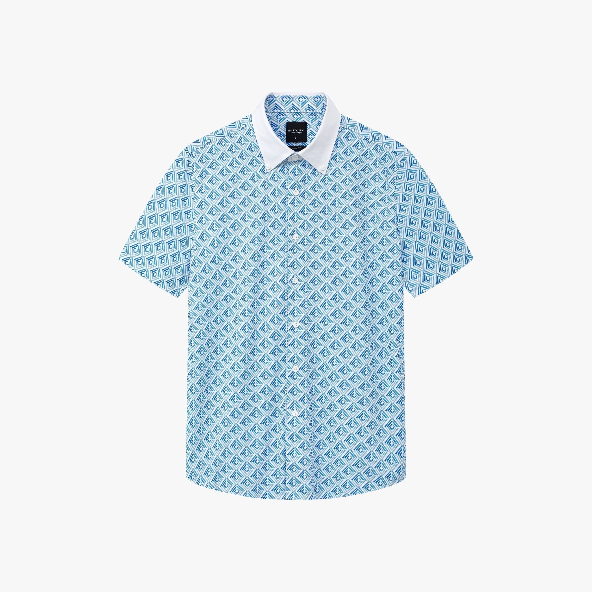 Áo sơ mi cộc tay hoạ tiết, (Xanh, 39)