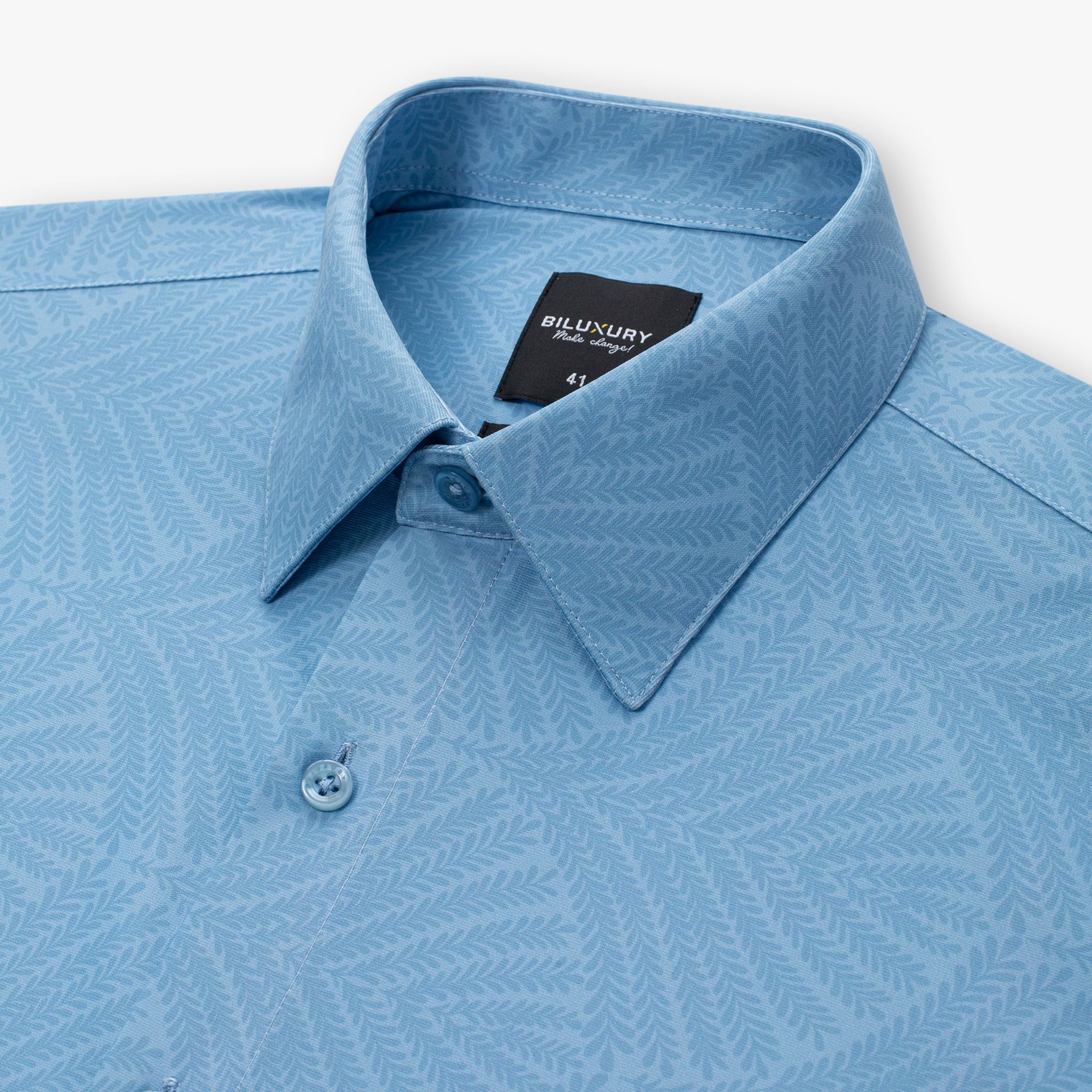 Áo sơ mi cộc tay hoạ tiết, (Xanh nhạt, 39)