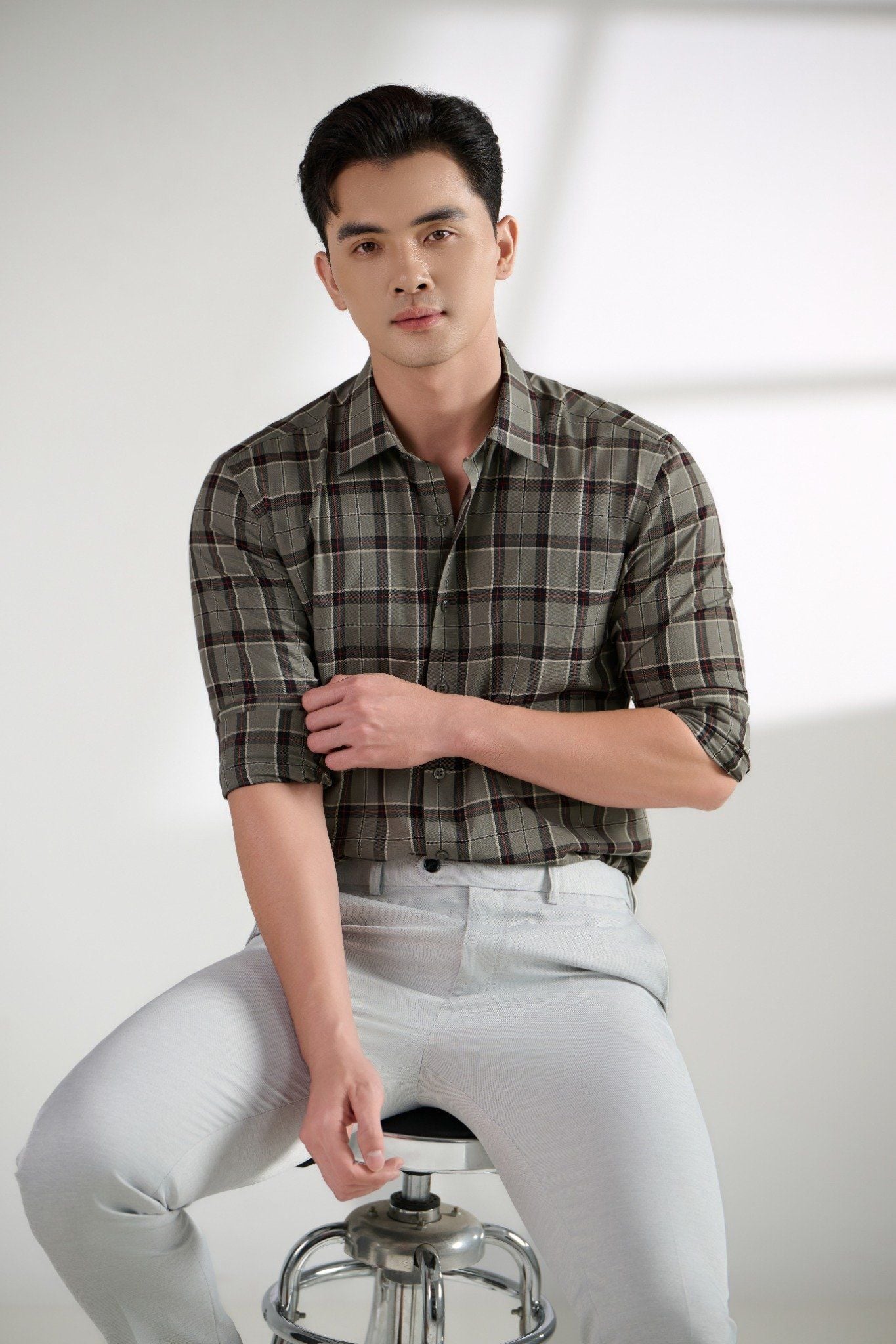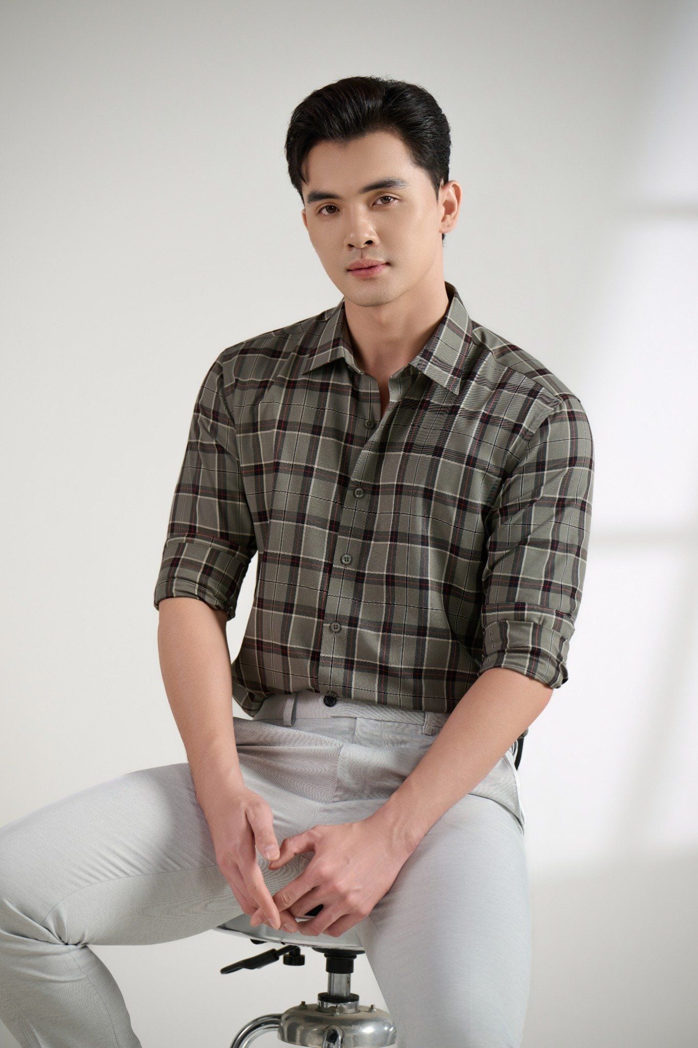 Áo sơ mi dài tay caro, (Rêu, 39)