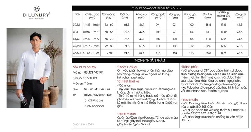 Áo sơ mi dài tay cơ bản, (Trắng, 40)