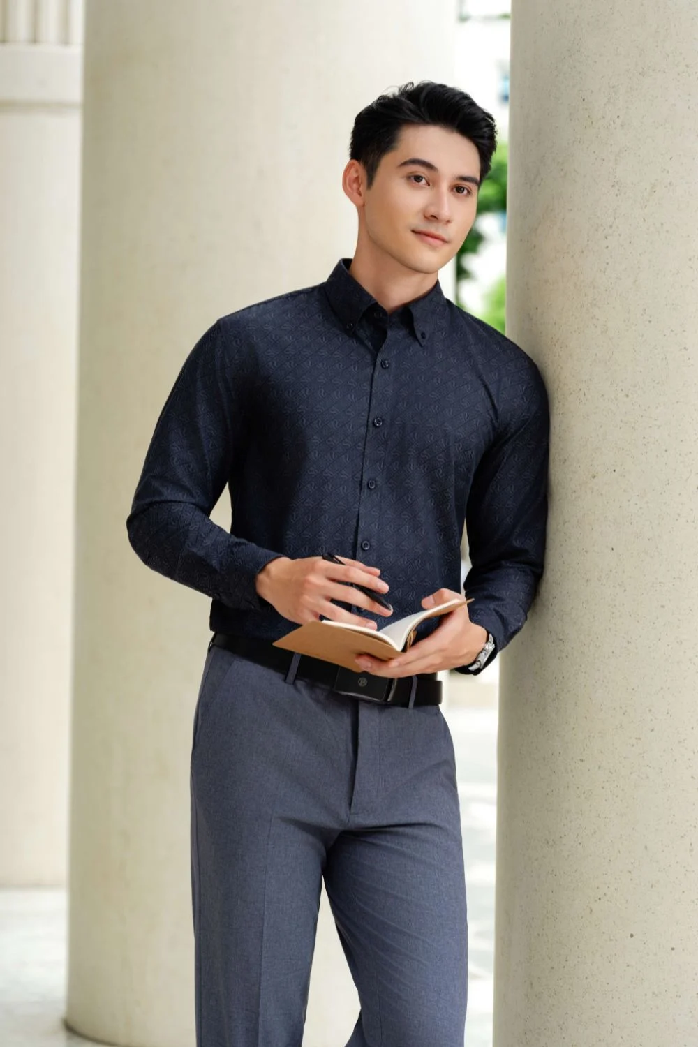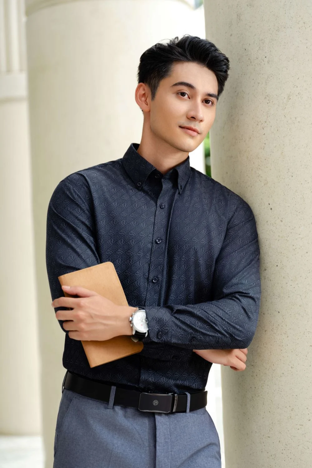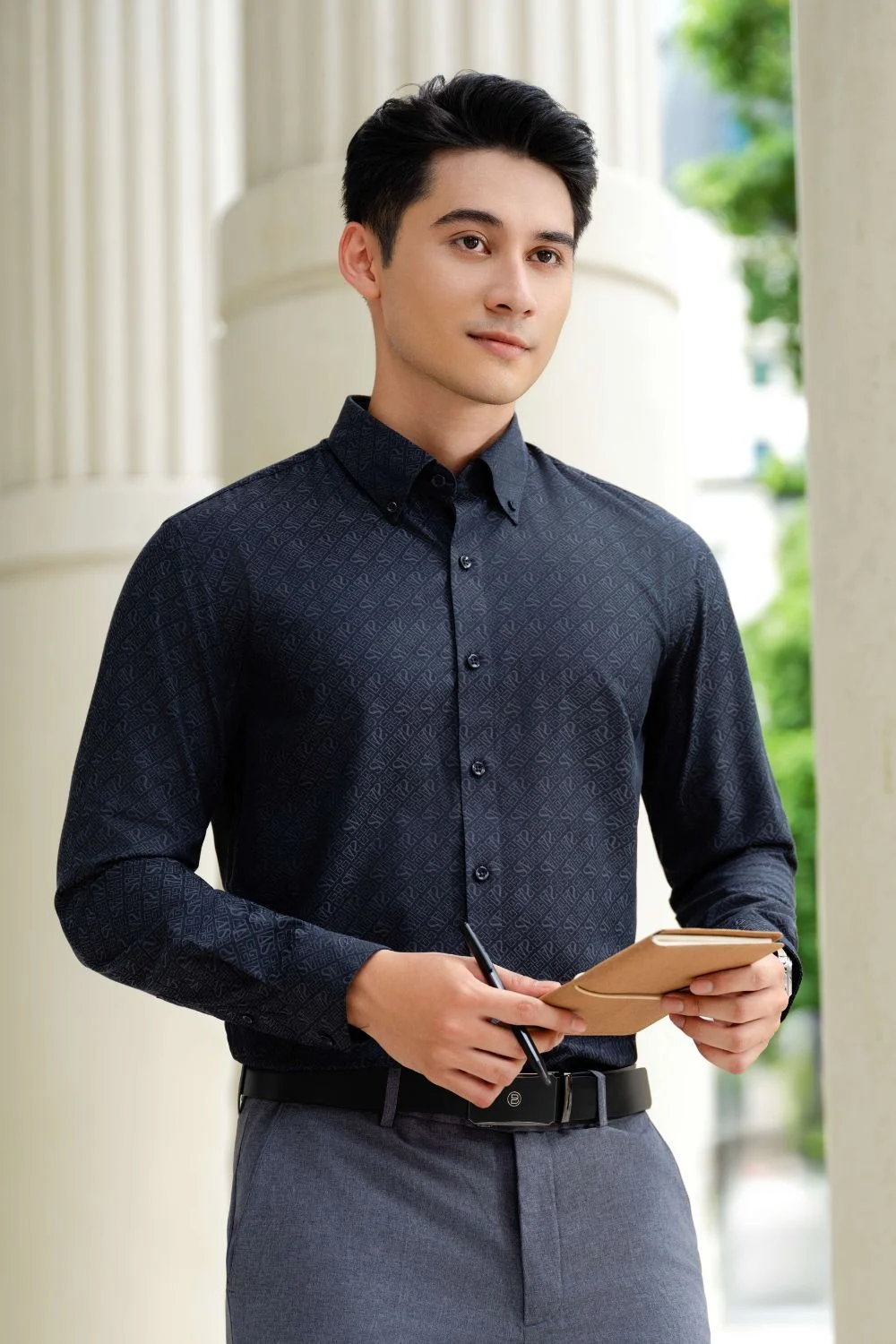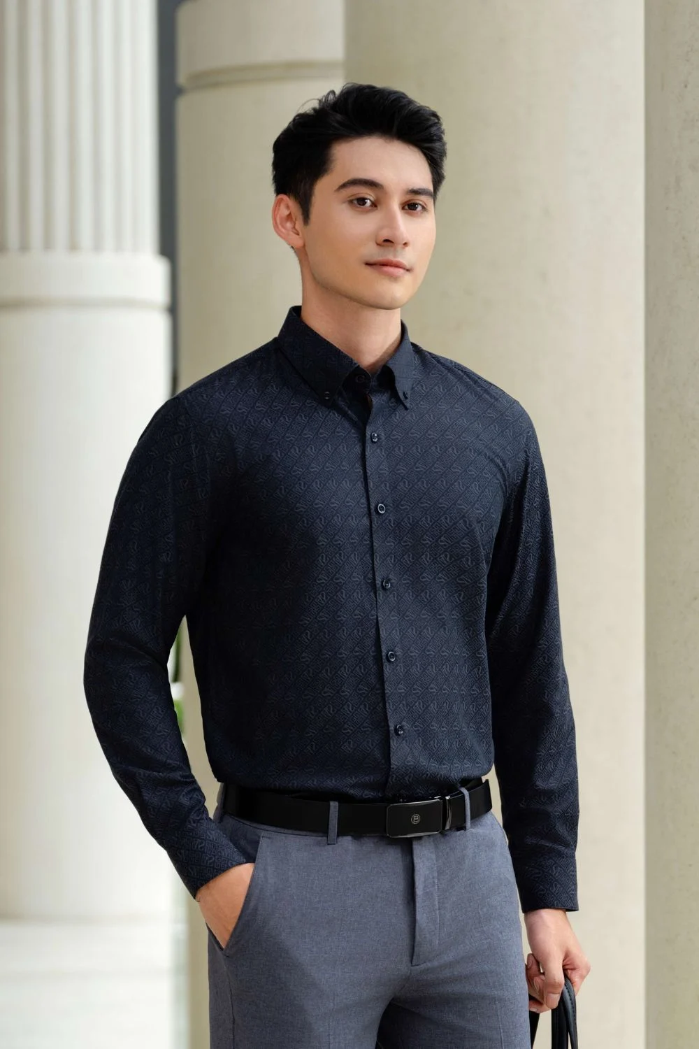 Áo sơ mi dài tay hoạ tiết, (Ghi Tối, 39)
