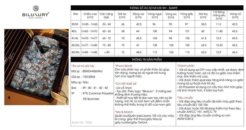 Áo sơ mi dài tay hoạ tiết, (Nâu, 39)