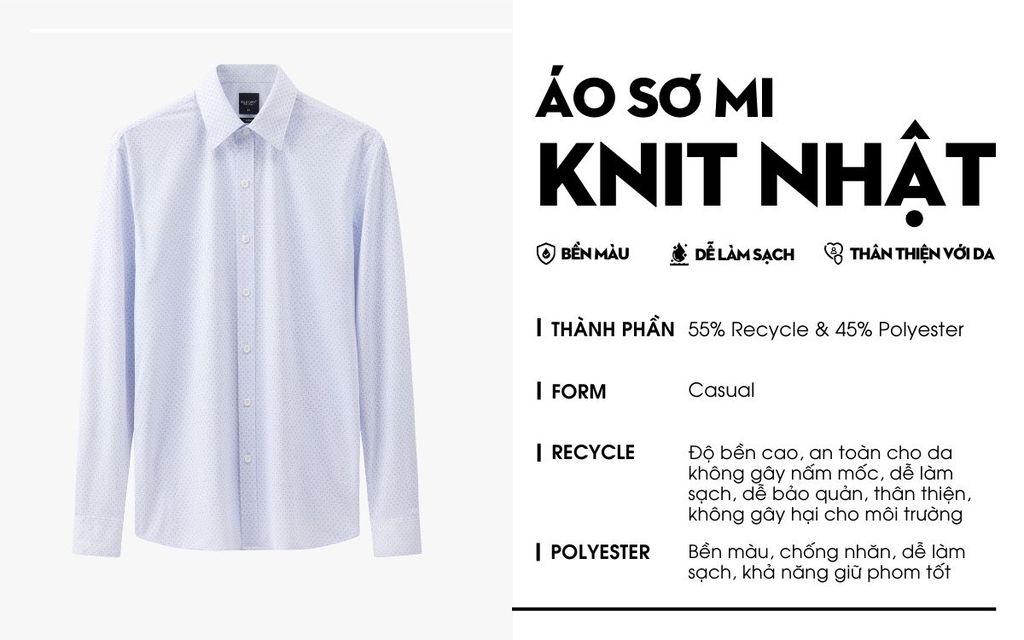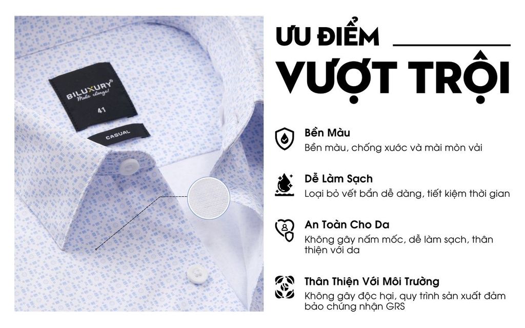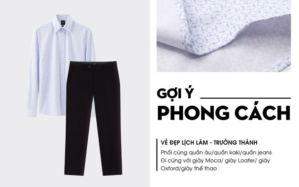 Áo sơ mi dài tay hoạ tiết, (Xanh Nhạt, 39)