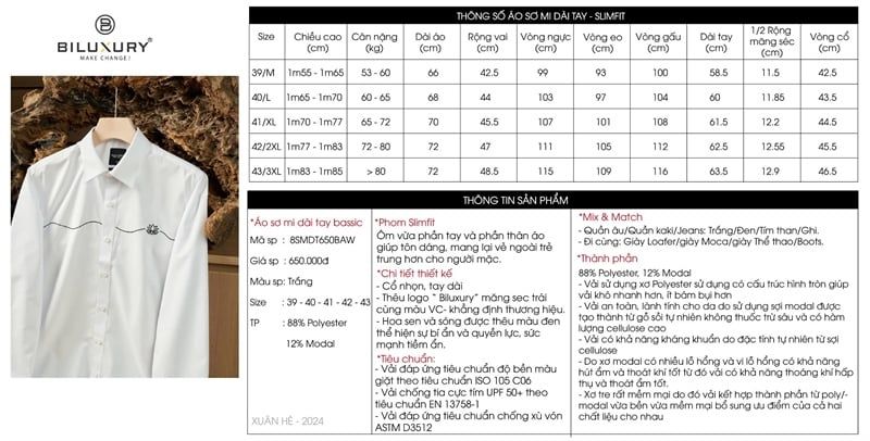 Áo sơ mi thiết kế sóng nước hoa sen (Trắng, 39)