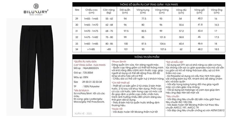 Quần âu cạp tangdor, (Đen, 29)