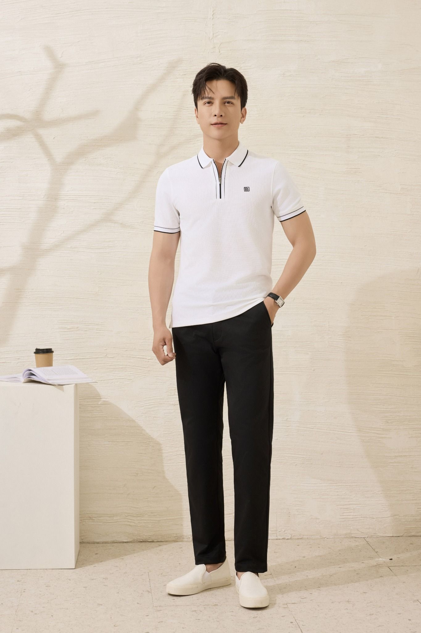 Quần kaki dài thiết kế, (Đen, 29)