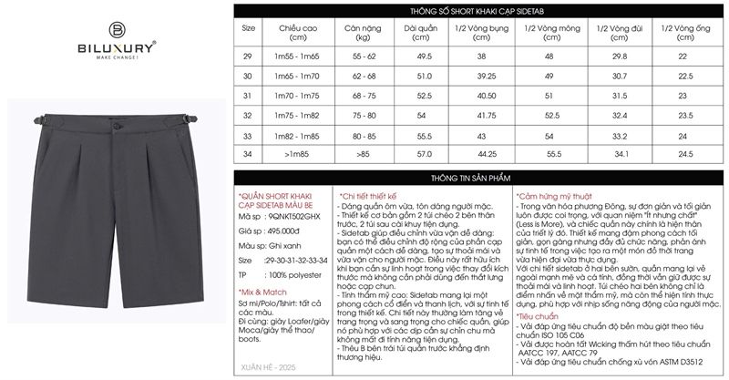 Quần kaki ngố thiết kế (Ghi xám, 34)