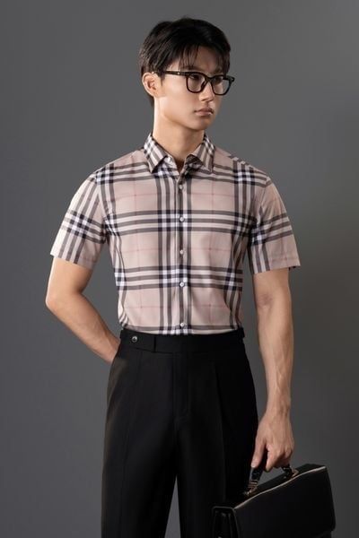 Sơ mi CT24 nâu kẻ vuông - SNC024