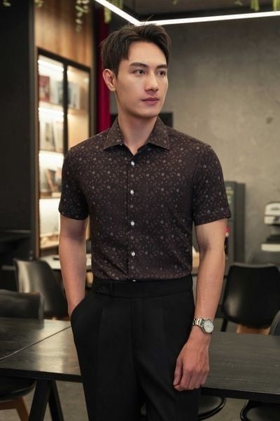 Sơ mi CT25 đen hoạ tiết hoa SNC035 (48-56) - 56