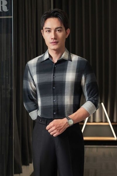 Sơ mi đen kẻ vuông trắng SMC178 (48-56) - 56